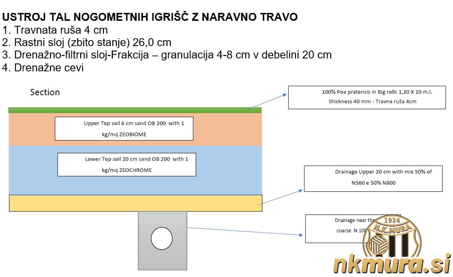 Na Fazaneriji poteka 12. dan prenove travnate površine. Bagri odstranjujejo še zadnjo zemljo ob severni strani in po predvidevanjih bo ta danes v celoti odstranjena. Istočasno so z južne strani pričeli z izdelavo drenaže, ki je že narejena čez polovico igrišča. Danes so na jugu pričeli z navažanjem frakcije v katero bodo položili namakalni sistem.