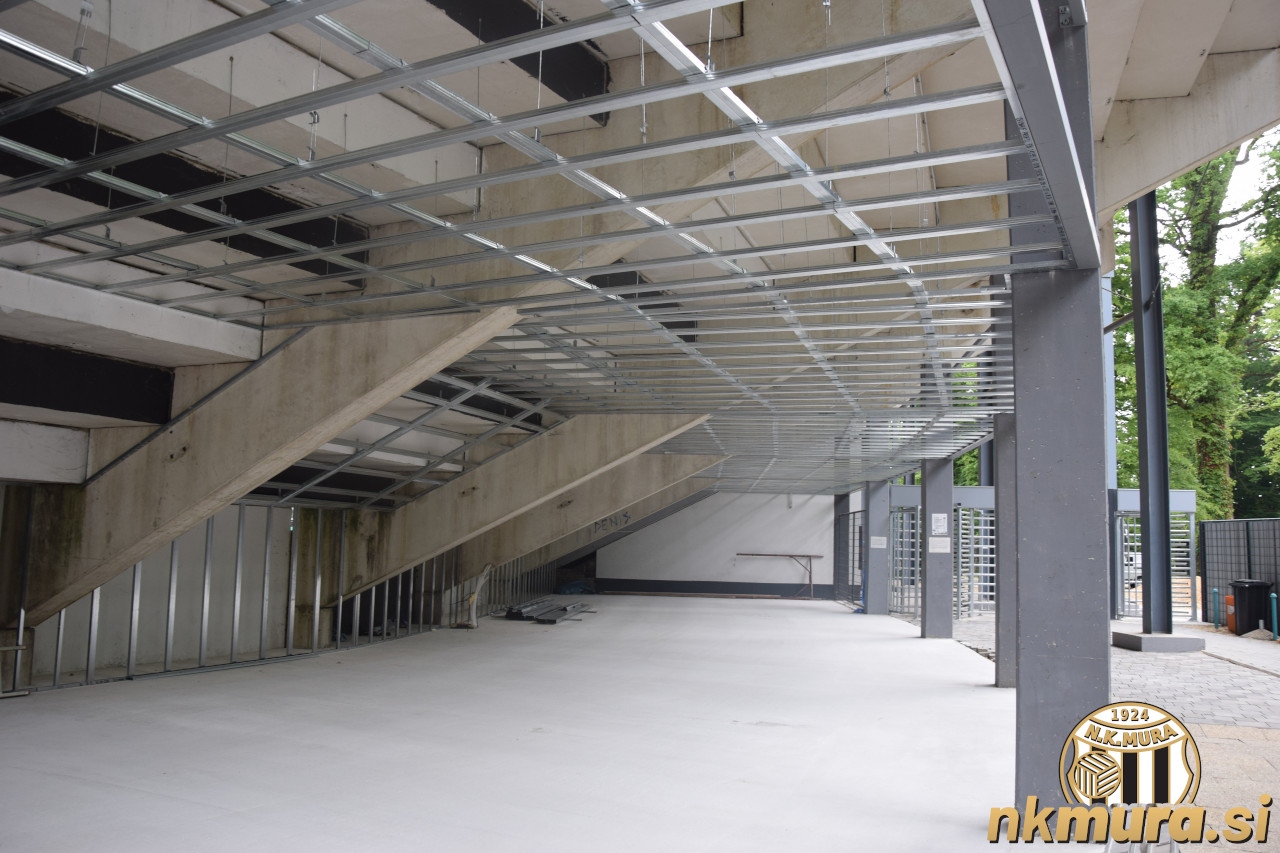 Dela pa ne potekajo le na glavnem igrišču temveč se nadaljujejo še pod tribunami. Pod južno tribuno je skoraj končana stropna konstrukcija novih prostorov. Kot smo že poročali bo zraven sedanjega šanka (pod sektorjem E) gostinski lokal s hrano. Sledila bo klubska trgovina, muzej in prostor za fotografiranje. Pod sektorjema B in A bosta sejna soba in nove klubske pisarne.