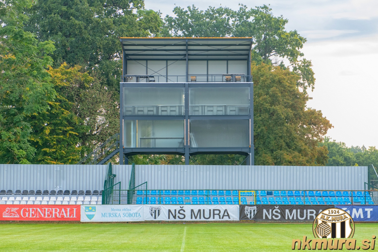 Pogled na vzhodno tribuno in nove snemalne stolpe leta 2020. Avtorske pravice: nkmura.si Foto: Aleš Cipot/fotolens.si