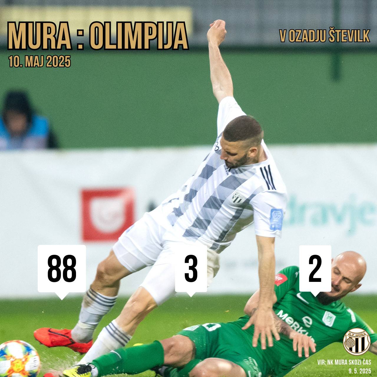 Pred nogometaši Mure in Olimpije je 89. prvenstveni obračun, ki bo v soboto, 10. maja 2025 ob 20.15 na Fazaneriji. Nogometaši Mure bodo po sedmih tekmah brez zmage skušali točke odvzeti najresnejšemu kandidatu za naslov državnega prvaka.