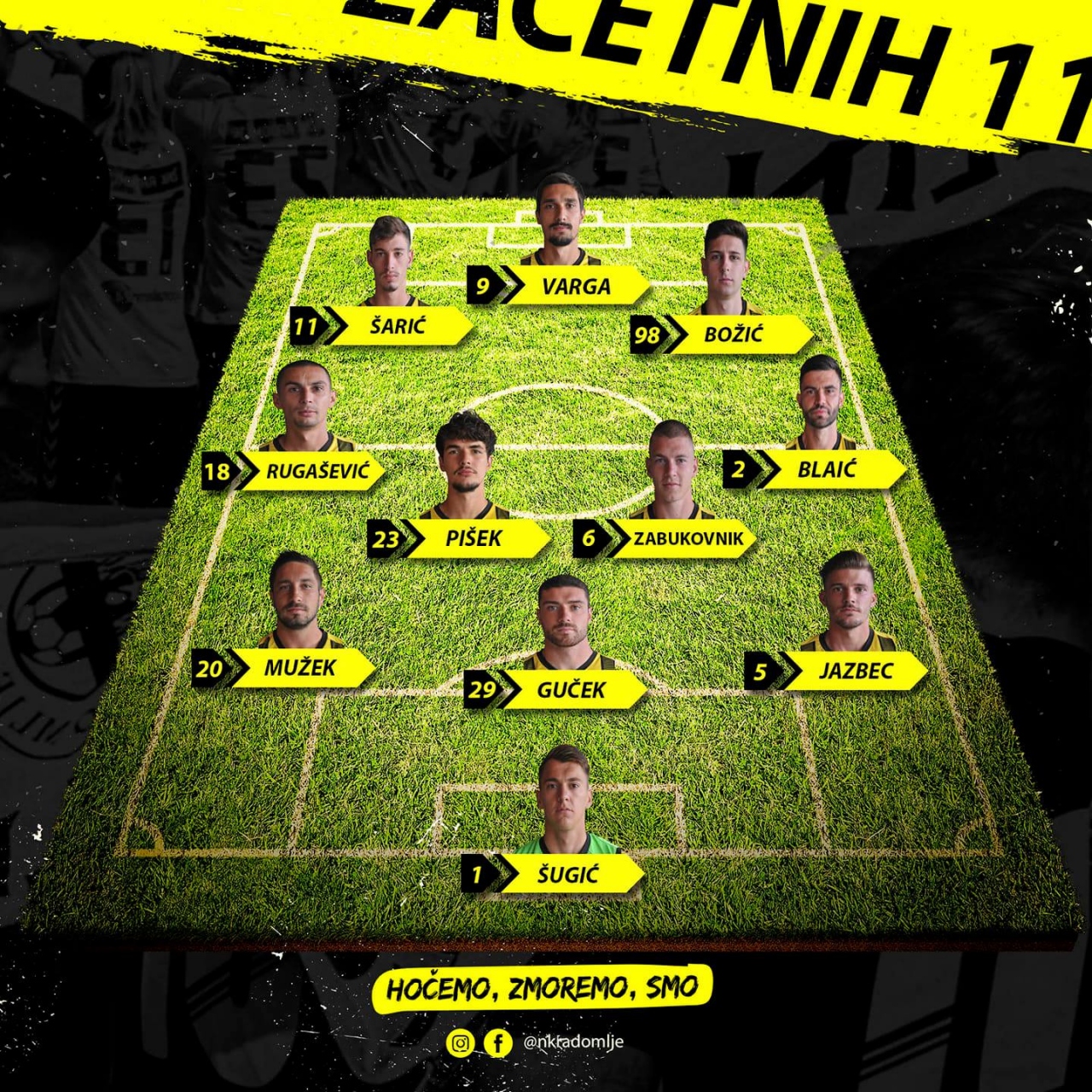 Postava Radomelj: Šugić, Mužek, Guček, Jazbec, Blaić, Pišek, Zabukovnik, Rugašević (od 22. Ihbeisheh), Šarić, Božić, Varga. Trener: Rok Hanžič.