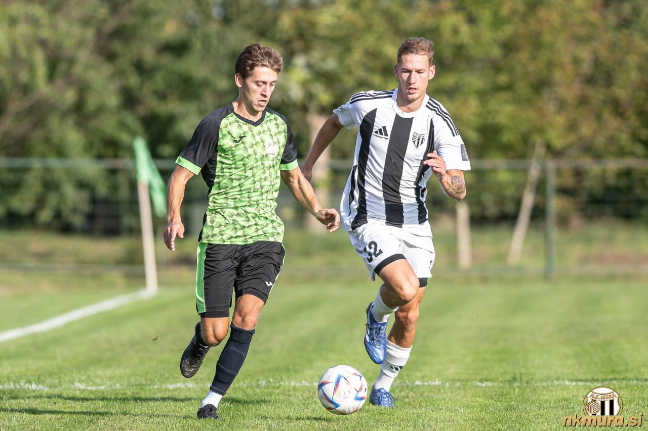 Mark Strajnar v dvoboju z igralcem Bogojine. Avtorske pravice: nkmura.si Foto: Loris Cipot/fotolens.si