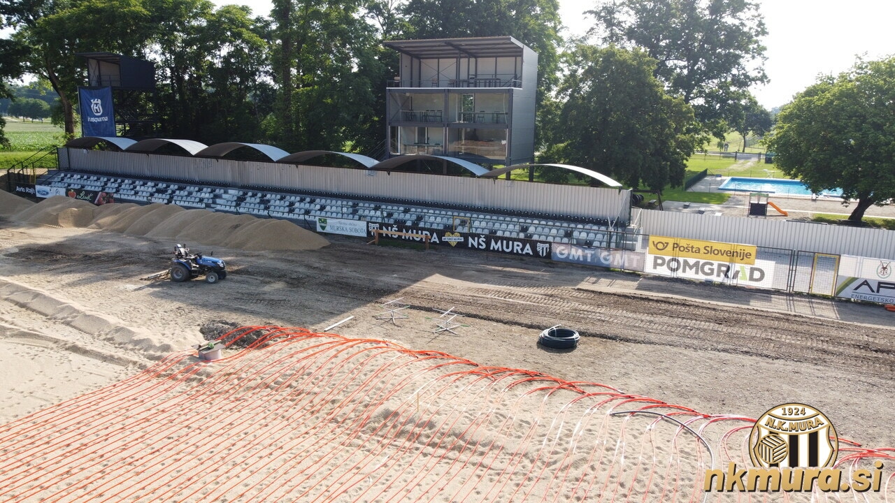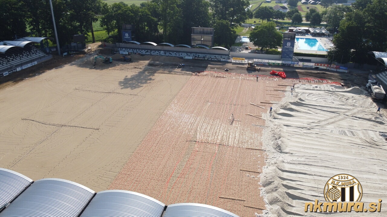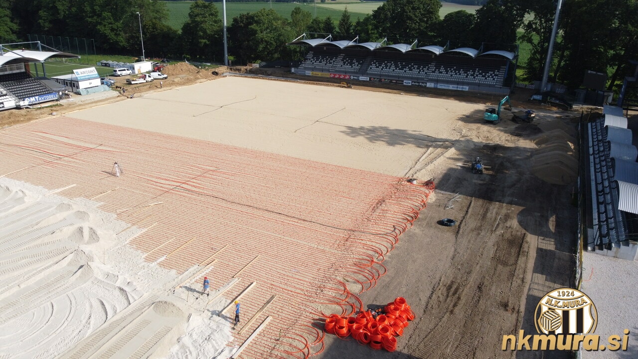 Prinašamo utrinke 24. dne prenove igralne površine na Fazaneriji. Video in fotografije so bile zajete 15. junija 2022. Na igrišču polagajo talno gretje, namakalni sistem in končni sloj peska na katerega pride travnata ruša.