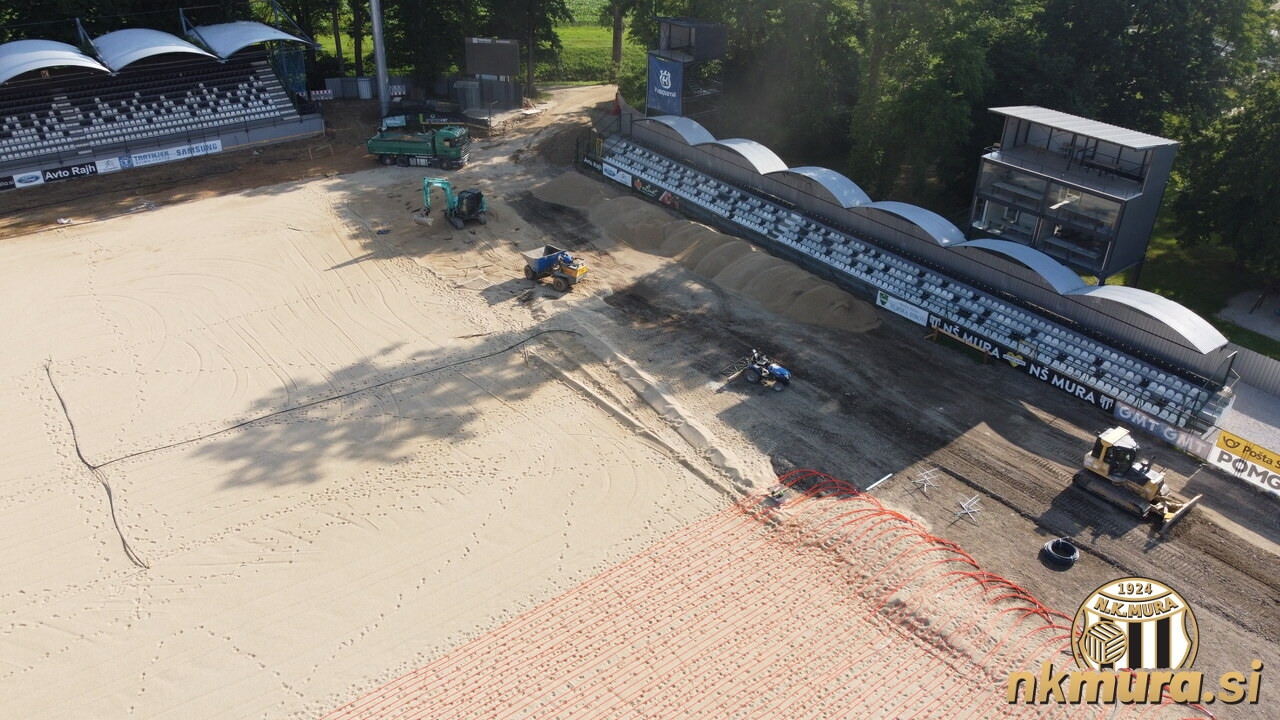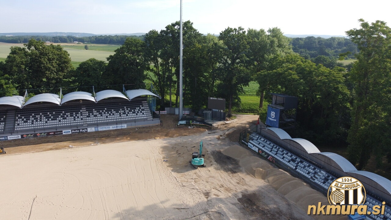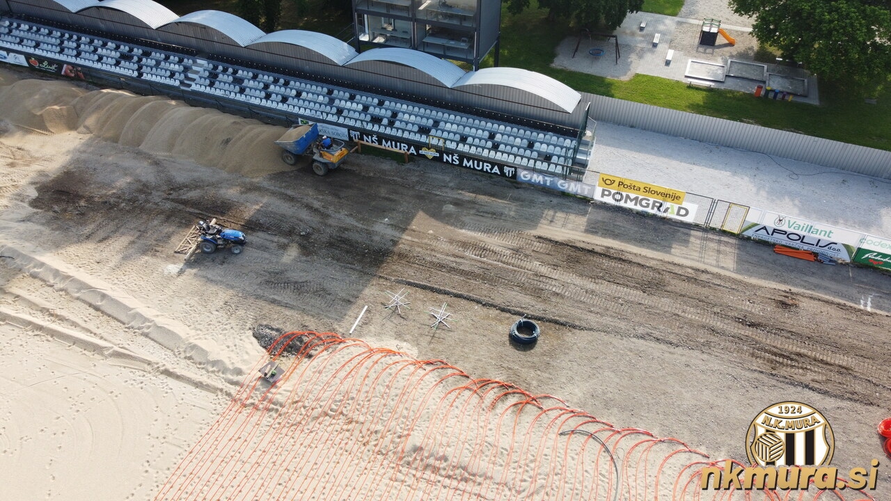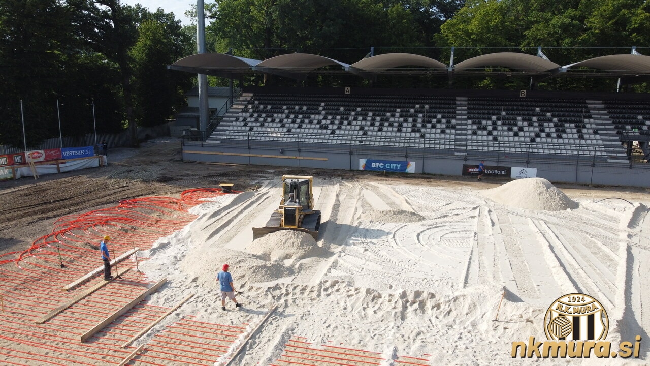 Prinašamo utrinke 24. dne prenove igralne površine na Fazaneriji. Video in fotografije so bile zajete 15. junija 2022. Na igrišču polagajo talno gretje, namakalni sistem in končni sloj peska na katerega pride travnata ruša.