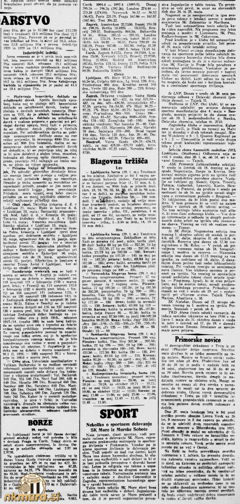 Na drugi strani je nogomet zadnja leta stagniral. Prvo tekmo v letošnji sezoni bo Mura igrala 11. maja 1930 proti mariborskemu Železničarju. Tekma bo v Murski Soboti.