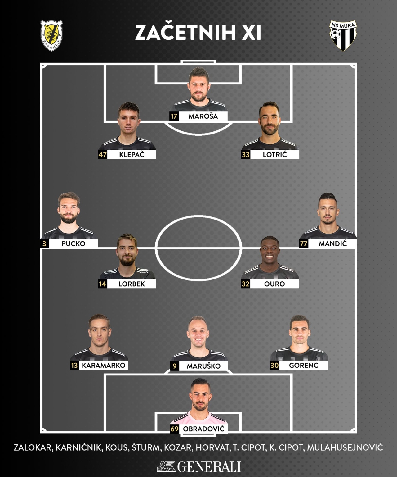 Mura: Obradović, Karamarko, Maruško, Gorenc (od 46. Karničnik), Pucko, Lorbek (od 61. Horvat), Ouro (od 78. T. Cipot), Mandić (od 46. Mulahusejnović), Klepač (od 46. Kous), Lotrič, Maroša. Trener: Ante Šimundža.