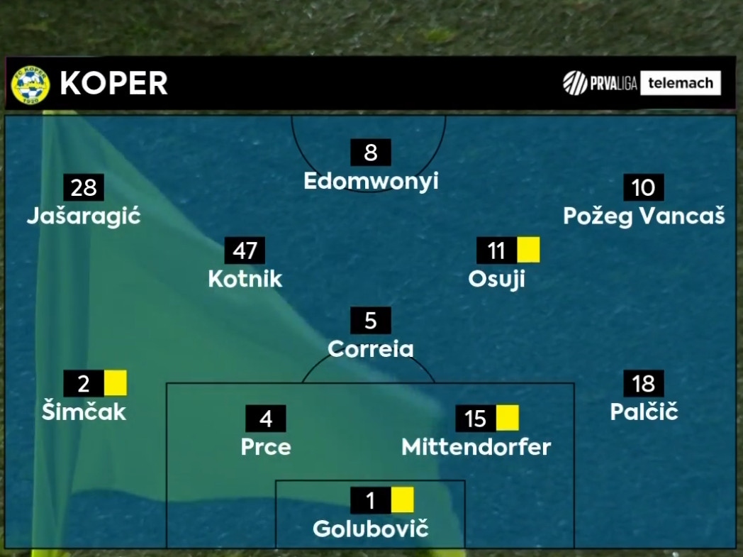 Koper: Golubović, Prce, Mittendorfer, Palčič, Šimčak, Correia, Kotnik, Osuji, Požeg Vancaš, Jasaragić (od 66. Šipovac) Edomwonyi. Trener: Zoran Zeljković.