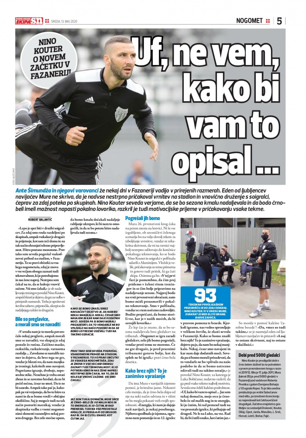 V Ekipi so objavili intervju z murino desetico, Ninom Koutrom. Spregovoril je o novih nalinih treninga, motivaciji pred tekmo, tekmah brez gledalcev in pričakovanjih pred prvenstvom ter polfinalom pokala Slovenije.