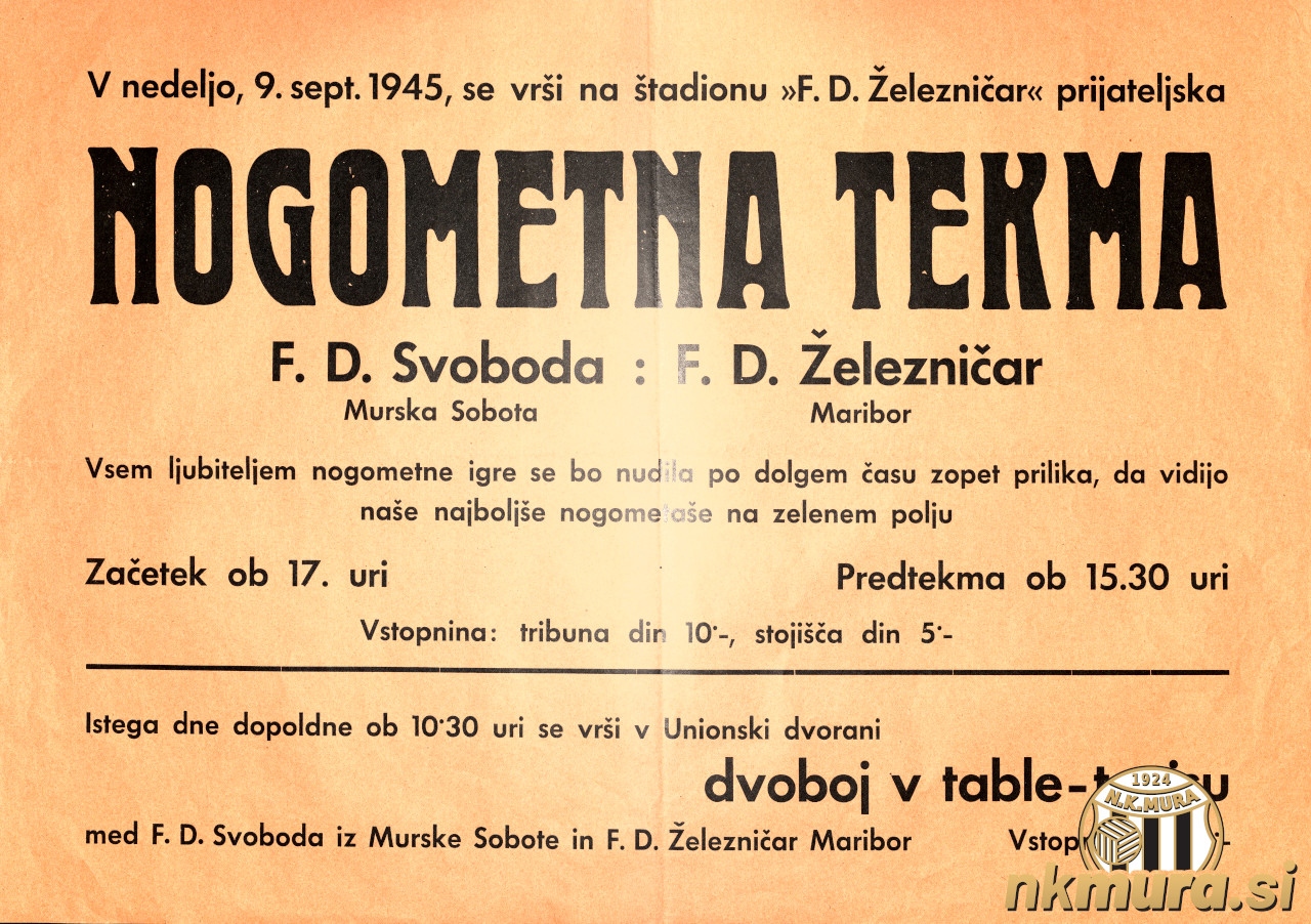 Vabilo na prijateljsko nogometno tekmo med mariborskim Železničarjem in Svobodo. Tekma je bila v Mariboru na Železničarja. Avtorske pravice: nkmura.si Foto: Pokrajinski arhiv Maribor