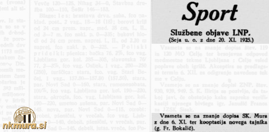 Iz službenih objav LNP z dne 20. novembra 1925, lahko razberemo, da ima Mura novega tajnika. To je postal Fr. Bokalić.