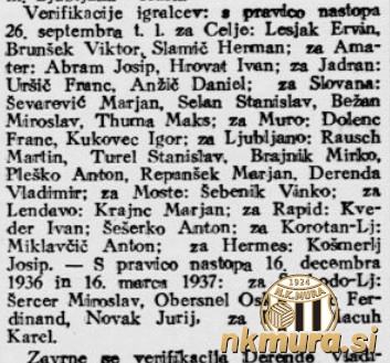 SK Muro sta okrepila Franc Dolenc in Igor Kukovec. Igor Kukovec je prvič zaigral za Muro na prijateljski tekmi Mura : Austria Graz, ki je bila odigrana 9. avgusta 1936. Igra v napadu k Muri pa je prišel iz ljubljanskega Slovana.