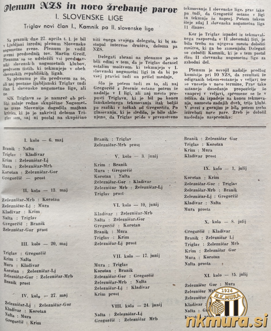 V Ljubljani je bil izredni plenum Nogometne zveze Slovenije na katerem so razpravljali o tem ali bi v 1. slovensko nogometno ligo sprejeli tudi ljubljanski Triglav. Po glasovanju so na koncu to tudi sprejeli. Liga od danes naprej šteje 11 članov in ne 10. Določili so tudi, da doslej odigrane tekme ostanejo v veljavi in se vnesejo v nove termine.