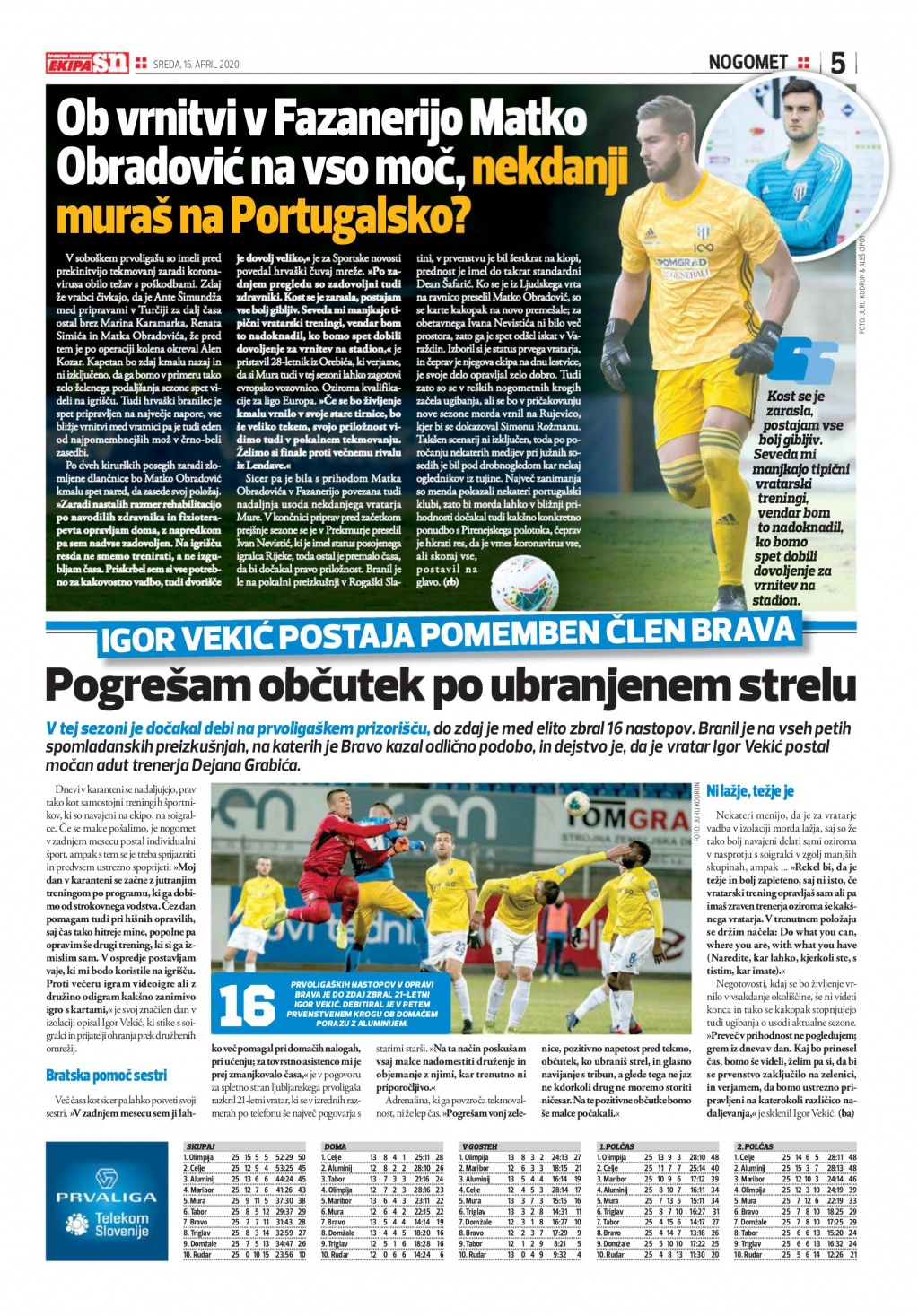 Po prestani operaciji dlanske kosti, se Matko Obradović počasi vrača. Ko bodo zaradi virusa Covid-19 sproščene mere in bo Fazanerija znova zaživela, bo vratar Mure lahko začel trenirati "na polno" in bo na voljo trenerju Anteju Šimundži.