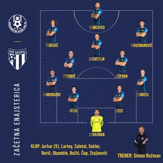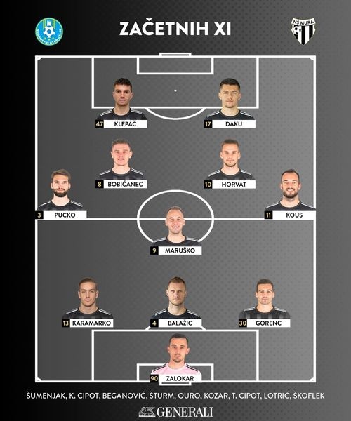 Mura: Zalokar, Karamarko (od 69. Šturm), Balažic, Gorenc, Pucko, Kous, Maruško (od 77. Ouro), Bobičanec (od 90. Kozar), Horvat, Klepač, Daku (od 90. Beganović). Trener: Damir Čontala.