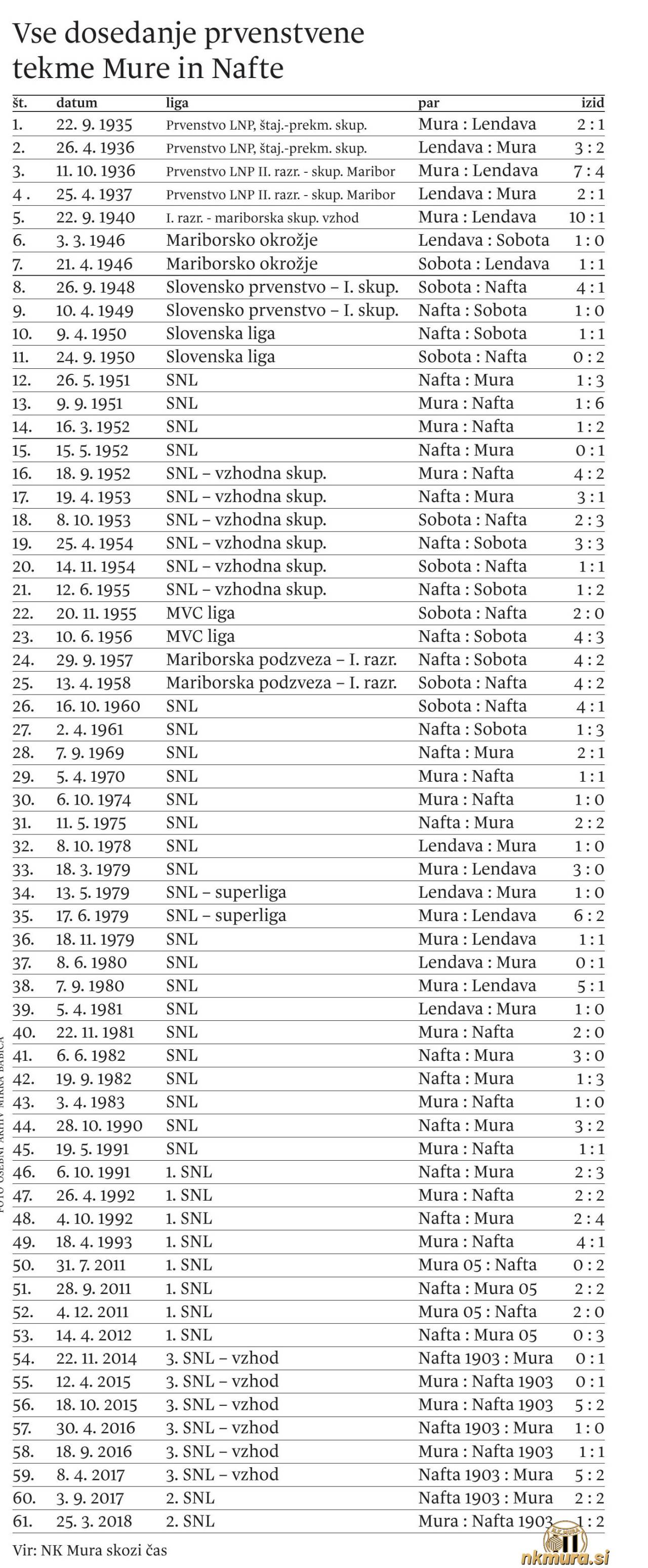 V nadaljevanju si lahko ogledate seznam vseh prvenstvenih tekem med Muro in Nafto.