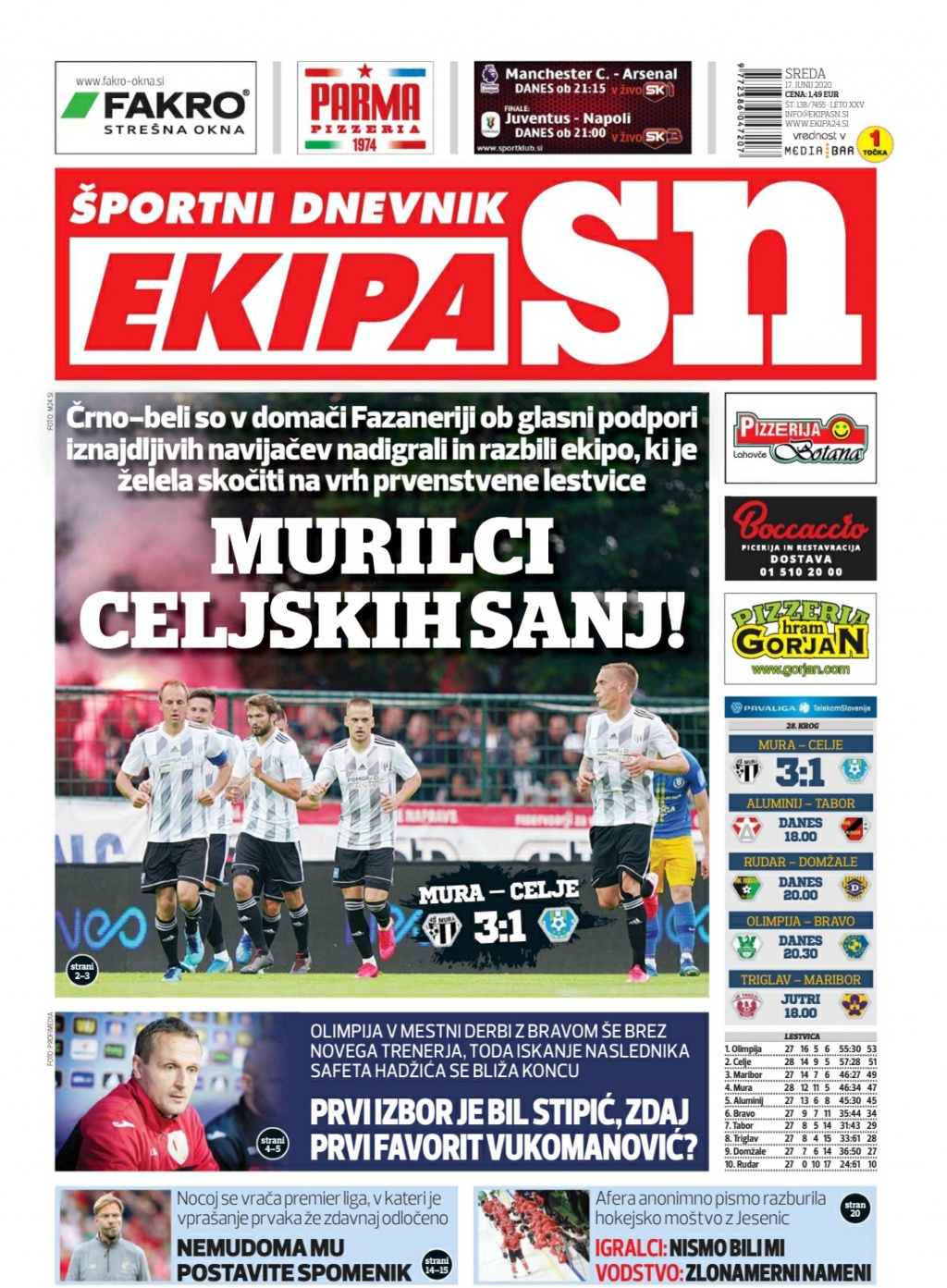 Naslovnica Ekipe 17. junija 2020. Foto: EkipaSN