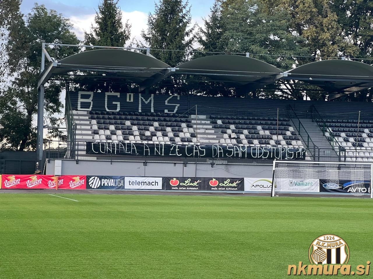 Murinega trenerja je na Fazaneriji pričakalo sporočilo Black Gringosov. Avtorske pravice: nkmura.si Foto: arhiv NK Mura skozi čas