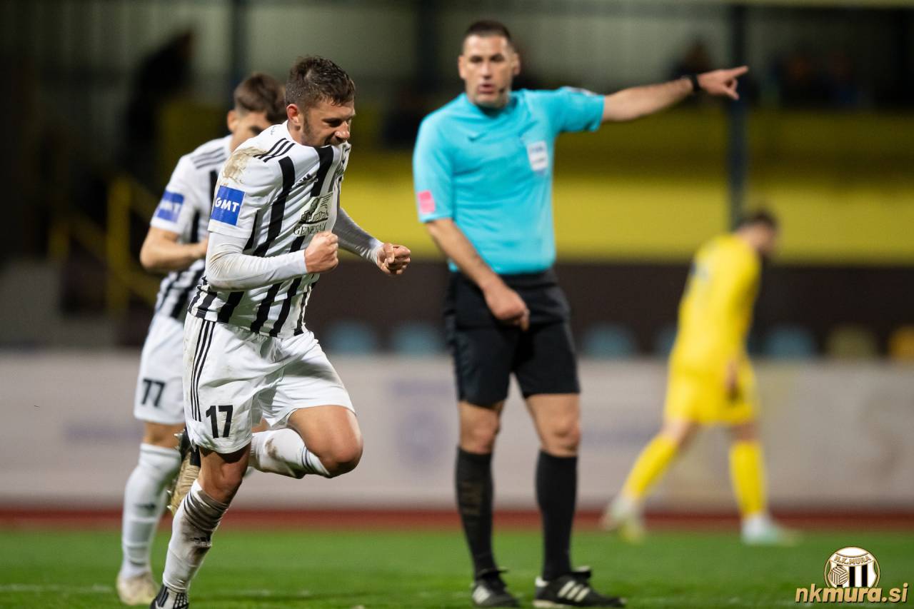 Amadej Maroša se veseli 99. zadetka v dresu Mure. Avtorske pravice: nkmura.si Foto: Aleš Cipot/fotolens.si