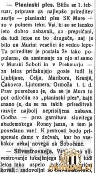 1. februar je v zgodovini Mure rezerviran za športni ples. Ta tradicionalna prireditev je bila tudi letos v veliki dvorani Sokolskega doma, potekala pa je v znamenju planin, zato se je ples imenoval "planinski ples".