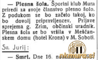 Športni klub Mura prireja za vse svoje člane plesno šolo. Pričela se bo takoj ko bo zadostno število prijav in sicer v Meščanskem domu (hotel Krona) v Murski Soboti.