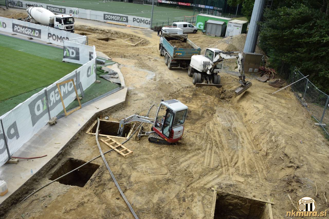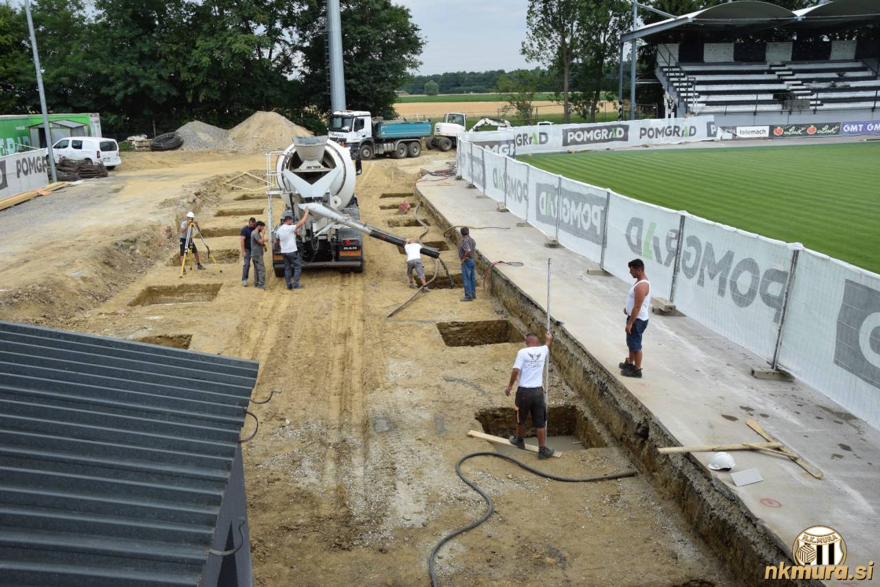 Vroče in soparno vreme ne ovirata gradnje severozahodne tribune, saj dela potekajo v skladu z načrti. Še vedno potekajo izkopi in betoniranja temeljev. Nov oz. stari bo tudi vhod na severno tribuno. Dosedanjega, ki je bil ob sektorju Black Gringosov so bili primorani porušiti, saj se bo nova tribuna dotikala severne.