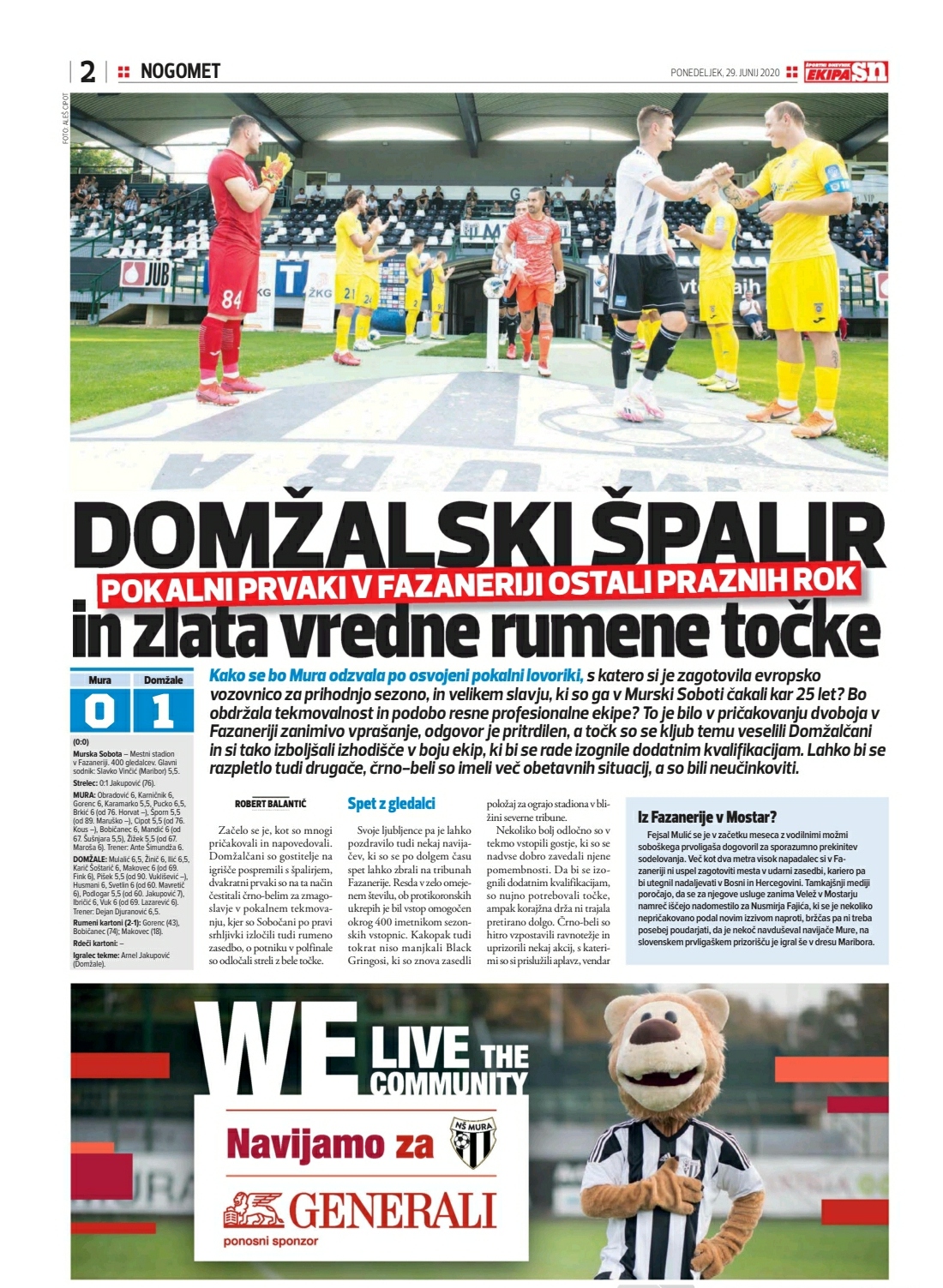 Mura si je že v sredo s pokalno lovoriko zagotovila evropsko vozovnico, kljub temu pa so v črno-belem taboru proti Domžalam pričakovali več kot ničlo proti Domžalam. Te so na gostovanju v Murski Soboti prišle do pomembne zmage v boju za izognitev devetemu mestu in dodatnim kvalifikacijam, hkrati pa tudi prve v sezoni proti Muri. Slednja ostaja peta s točko zaostanka za Aluminijem.