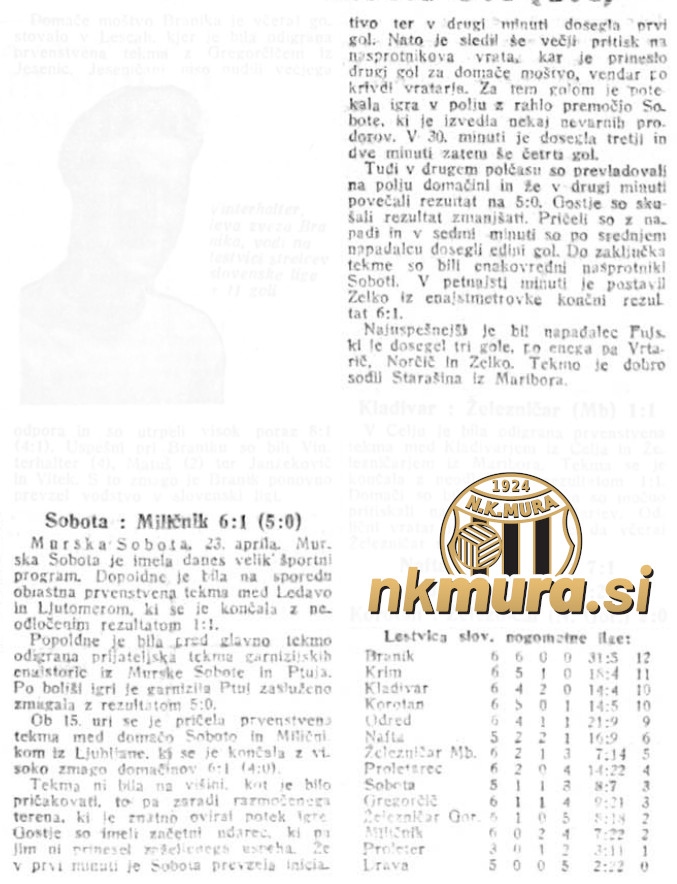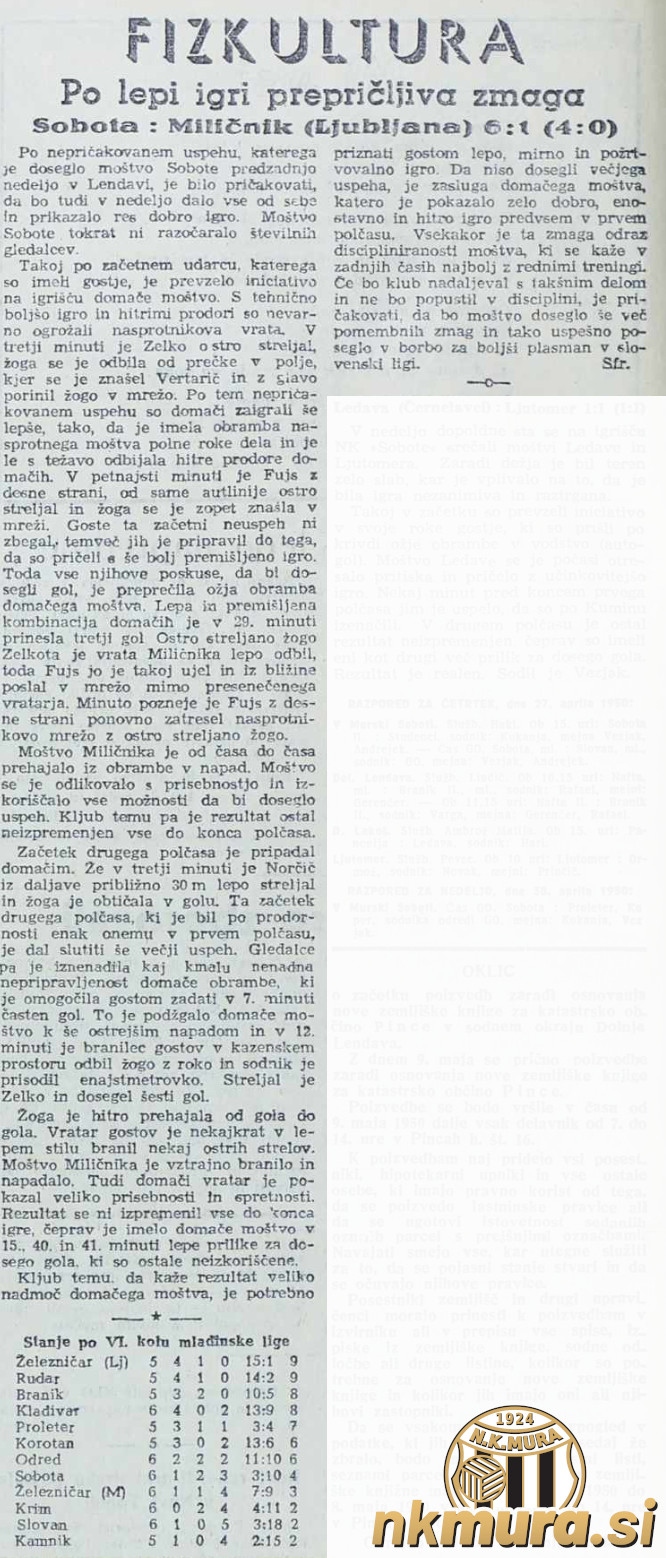 Nogometaši Sobote so po gostovanju v Lendavi tokrat na svojem igrišču pričakali ljubljanski Miličnik in zabeležili visoko zmago 6:1. Sobočani so visoko vodili že ob polčasu, ko je bilo 4:0.