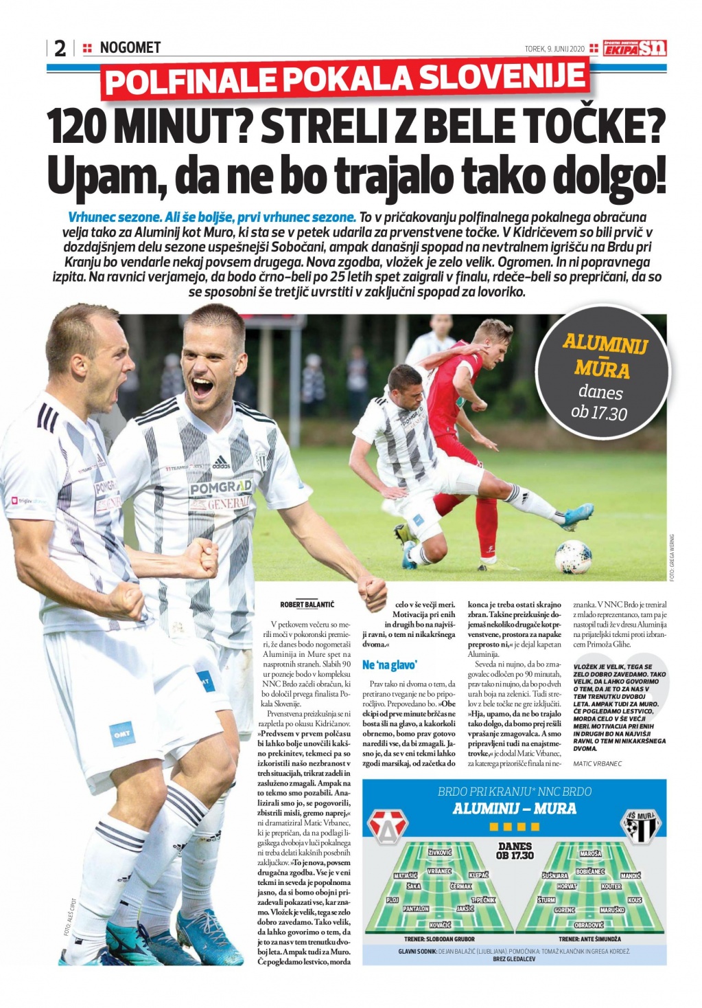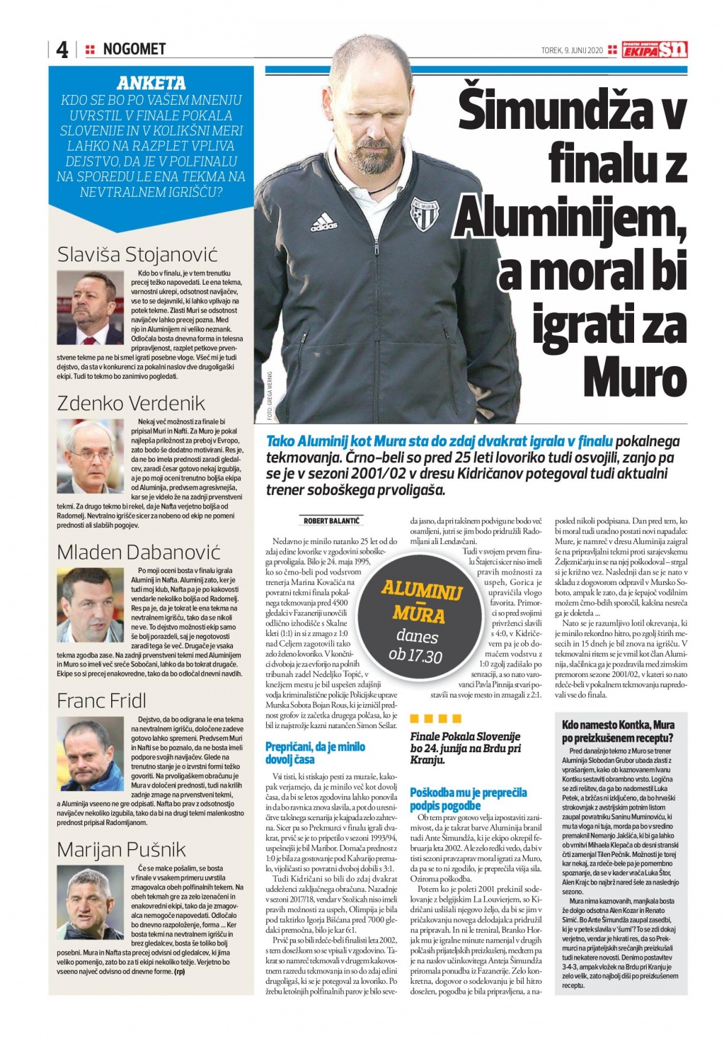 Nogometaše Mure čaka polfinalni dvoboj Pokala Slovenije proti Aluminiju. V eni tekmi na Brdu pri Kranju je vse mogoče in Mura lahko po 25. letih znova pride v finale in ga tudi osvoji. Tekma bo 9. junija 2020 ob 17.30, prenos pa bo na Sport klub 1.