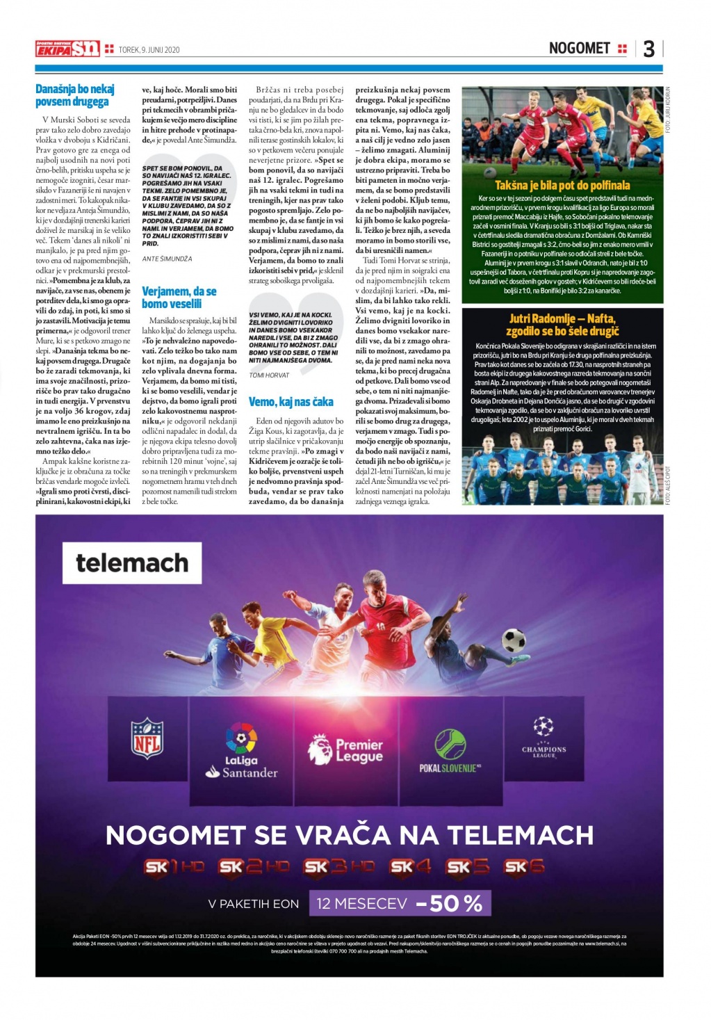 V Ekipi so objavili tudi članek z naslovom Šimundža v finalu z Aluminijem, a moral bi igrati za Muro. V njem govorijo o tem, kako malo je manjkalo, da bi Ante Šimundža v sezoni 2001/2002 oblekel dres Mure. Na koncu je zaigral za Aluminij.