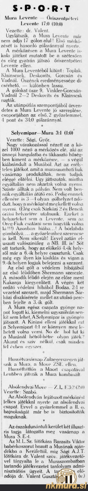 Tekmo sta si ogledala tudi dva vidna člana Madžarske nogometne zveze. Generalni sekretar MLSZ Viktor Barasits je klubu podaril lovorov venec, glavni sodnik Sagi pa je s trenerjem Mure dr. Gusztavom Valentom razpravljal o sodniškem tečaju.