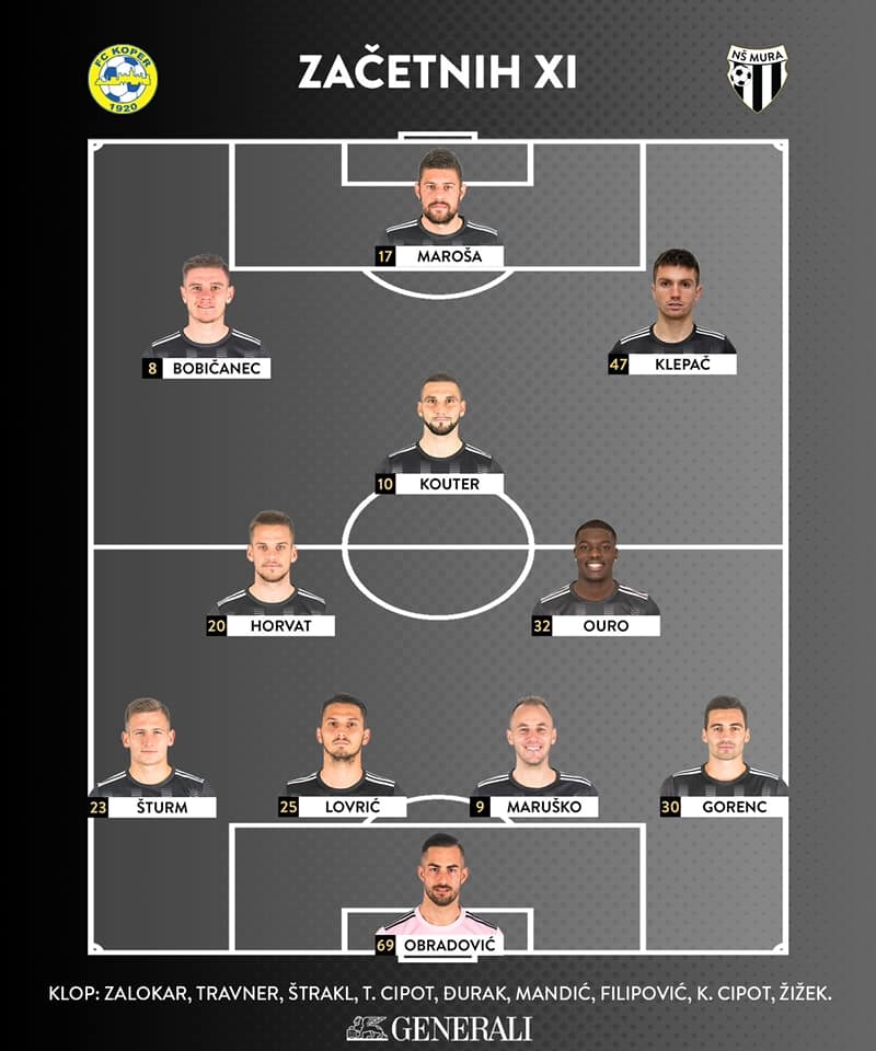 Ker je pri Muri zaradi kartonov manjkal Karničnik, zaradi poškodbe oz. bolezni pa Kous in Pucko, je imel Ante Šimundža težave koga postaviti na krilo. Na desnem krilu v obrambi je prvič zaigral Jan Gorenc, čeprav je njegov standardni položaj v obrambi na sredini. Zaradi poškodb pa so manjkali še Antolin, Kozar, Karamarko, Simić, Gyergyek in Brkić. Ostali položaji so bili več ali manj standardno popolnjeni. Zelo dobro je zopet igral Ouro.