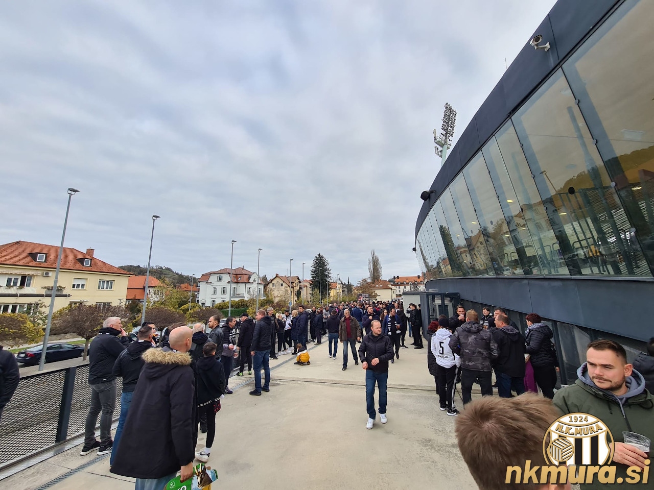 Zbirališče navijačev Mure je bilo pred severno tribuno Ljudskega vrta. Avtorske pravice: nkmura.si Foto: Matjaž Vöröš
