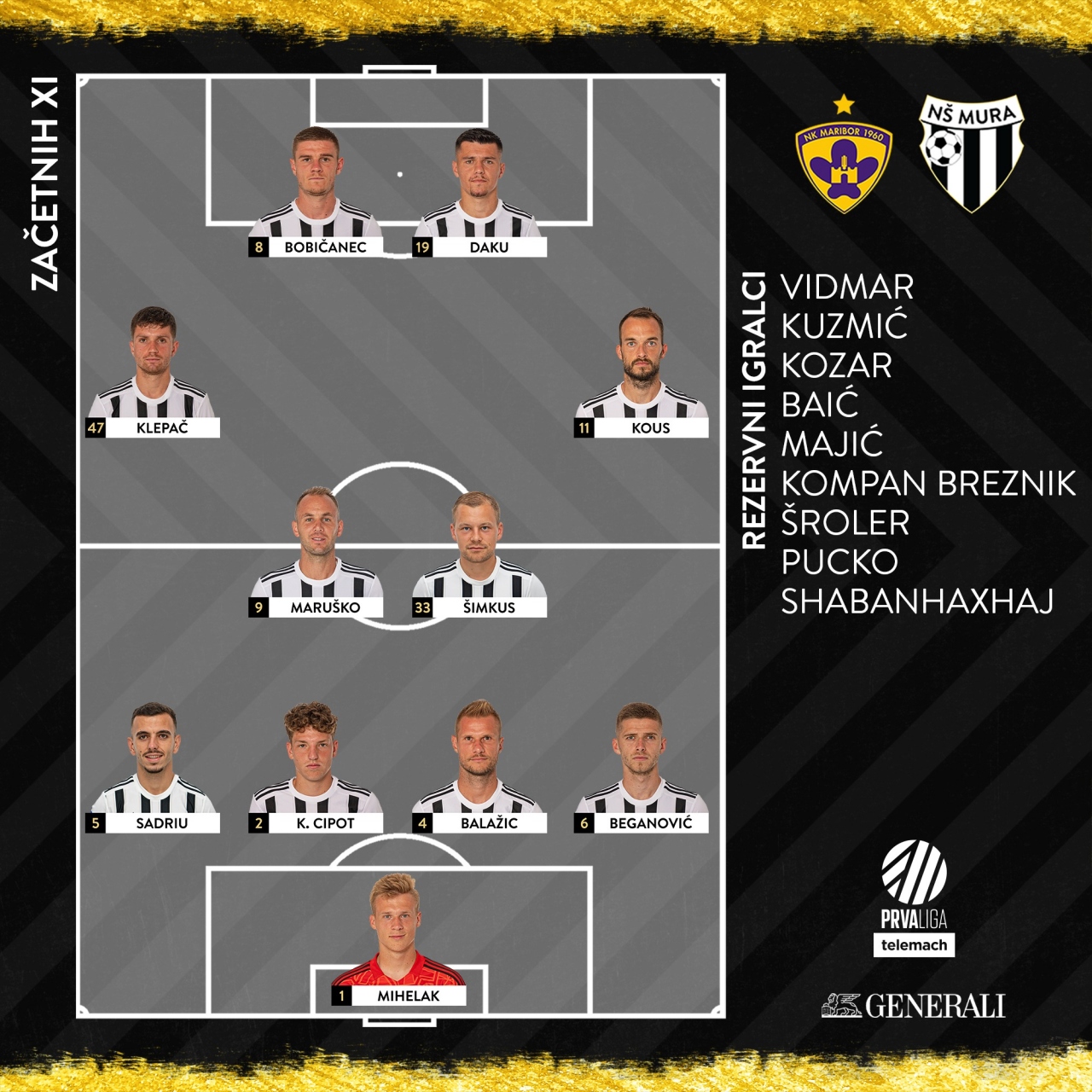 Mura: Mihelak, Beganović, K. Cipot, Balažic, Sadriu (od 46. Pucko), Maruško, Šimkus (od 70. Šroler), Kous, Bobičanec (od 79. Kozar), Klepač, Daku (od 79. Shabanhaxhaj). Trener: Damir Čontala.