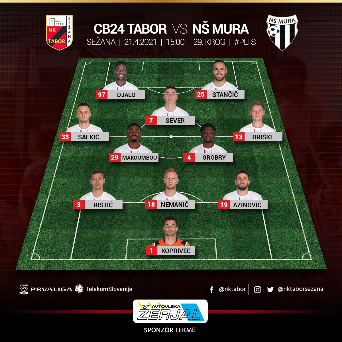 Postava Tabora: Koprivec - Ristić, Nemanič, Azinović - Salkič, Makoumbou, Grobry, Briški, Sever - Djalo, Stančič.