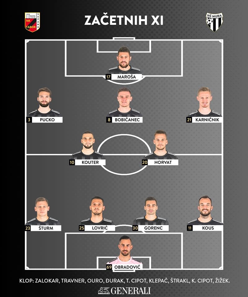 Postava Mure: Obradović - Šturm, Lovrić, Gorenc, Kous - Kouter, Horvat, Pucko, Bobičanec, Karničnik - Maroša.
