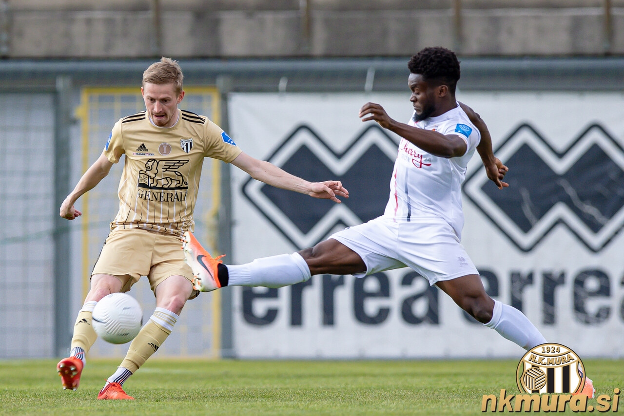 Strelec zadetka za Muro Žan Karničnik in Antoine Makoumbou. Avtorske pravice: nkmura.si Foto: Aleš Cipot/fotolens.si
