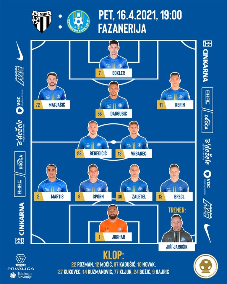 Postava Celja: Jurhar - Martis, Šporn, Zaletel, Brecl - Benedičič, Vrbanec, Matjašič, Dangubić, Kerin - Sokler.