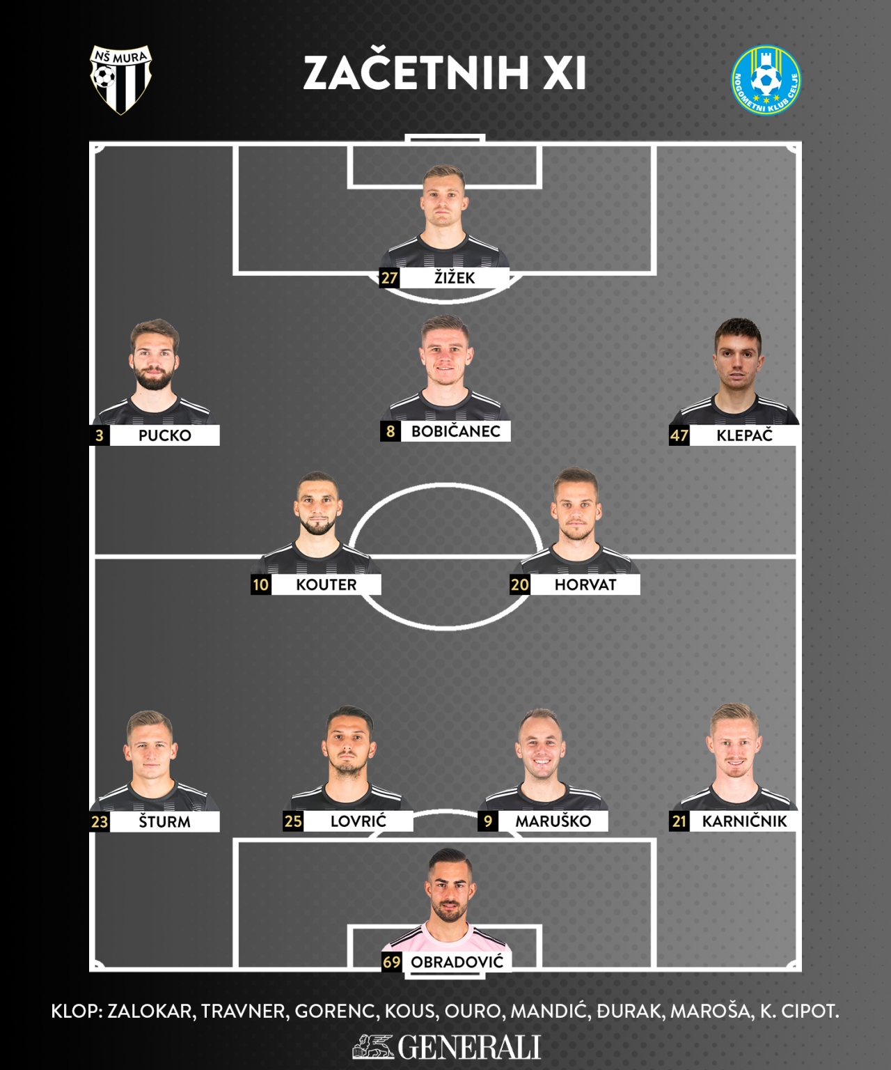 Mura je tekmo pričela v sledeči postavi: Obradović - Šturm, Lovrić, Maruško, Karničnik - Kouter, Horvat, Pucko, Bobičanec, Klepač - Žižek.