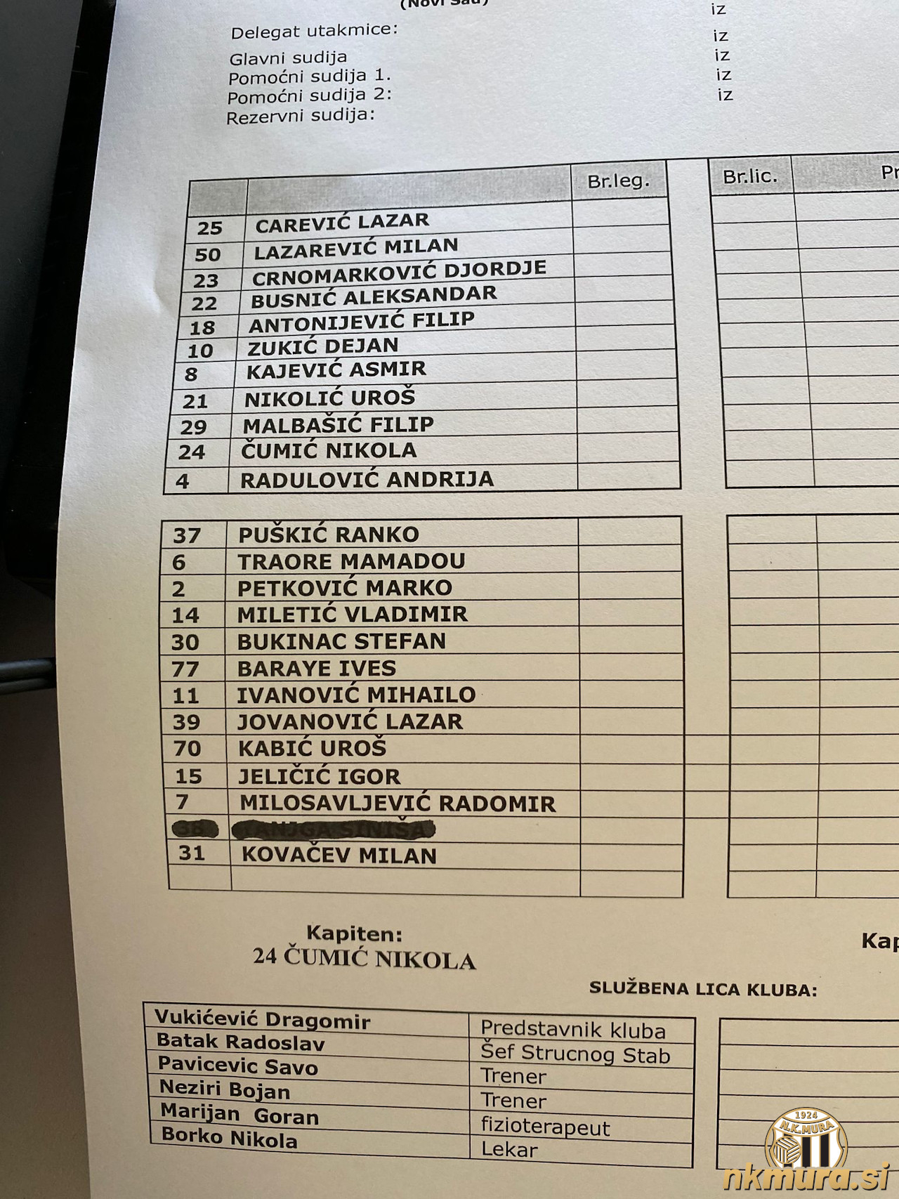 Postava Vojvodine na tekmi proti Muri (14. julij 2023). Avtorske pravice: nkmura.si Foto: Aljaž Vučkič