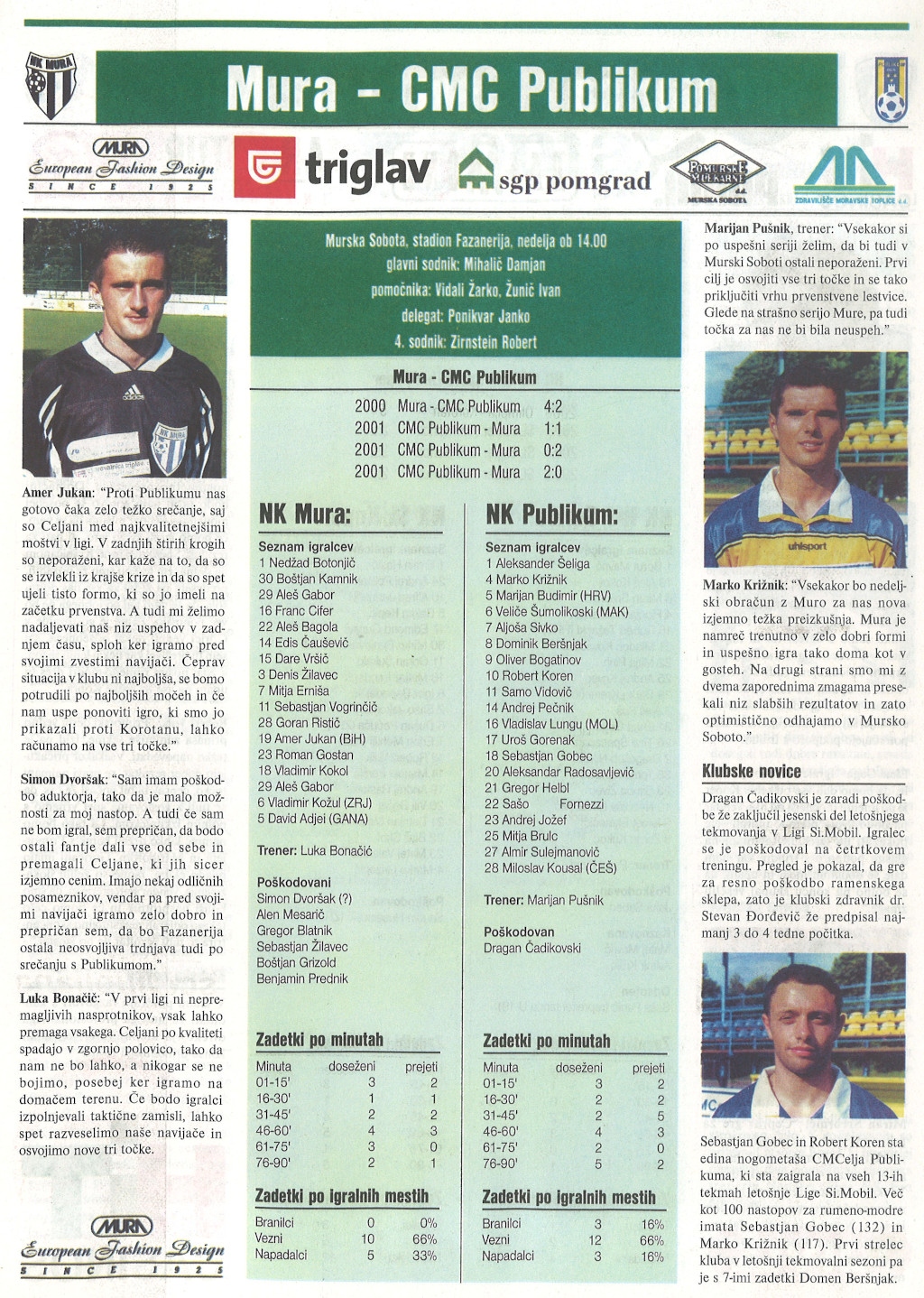 Nogometaši Mure bodo jutri igrali tekmo 14. kroga lige Si.Mobil. Na Fazaneriji bodo gostili CMC Publikum. V reviji Slovenski nogomet so objavili pričakovanja iz obeh taborov. Bo Mura dosegla še četrto zaporedno zmago? Amer Jukan, Simon Dvoršak in trener Luika Bonačić verjamejo v to.