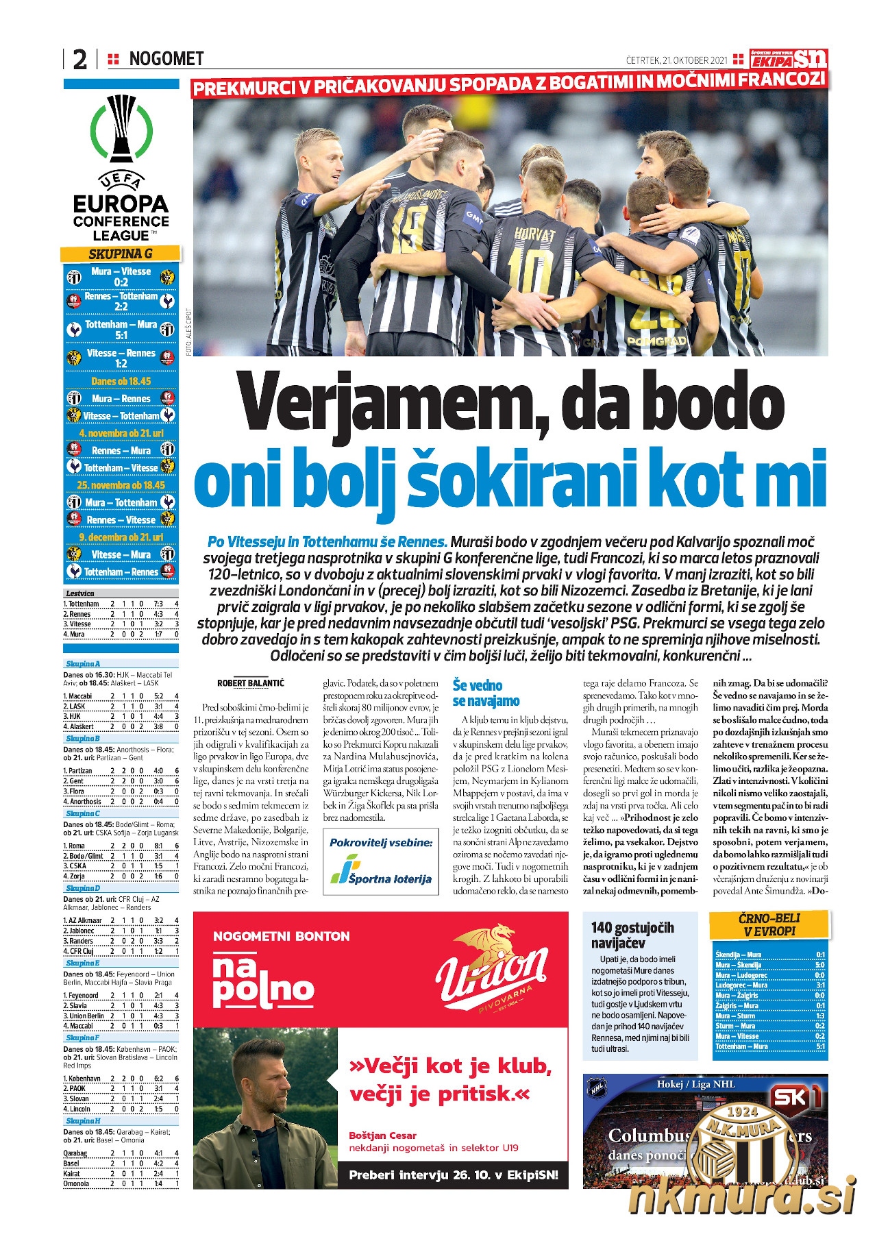 Nogometaše Mure čaka v četrtek tekma 3. kroga Evropske konferenčne lige. Tako kot je to običaj so pred tekmo opravili tiskovno konferenco in uradni trening. Oboje na stadionu Ljudski vrt v Mariboru, ki bo tudi prizorišče tekme.