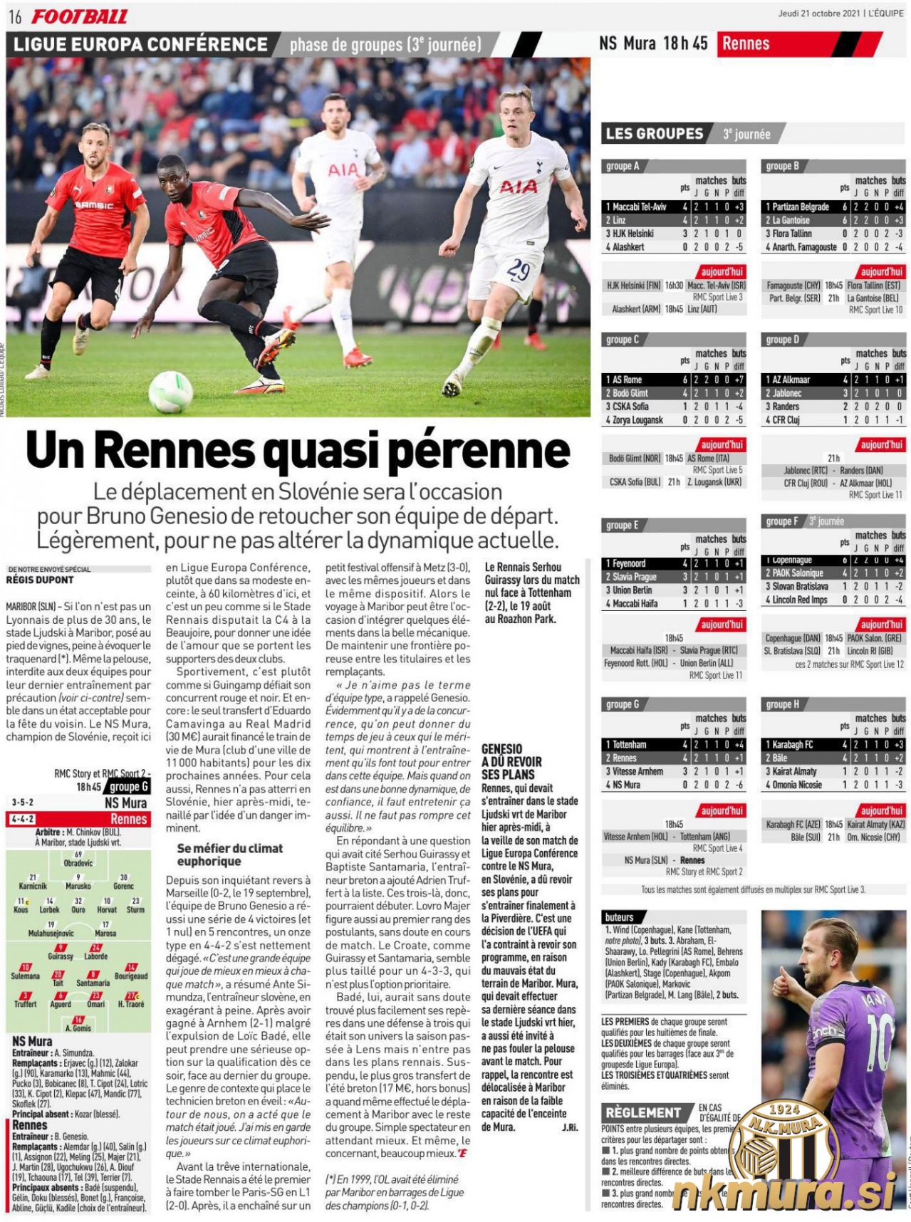 Rennes je v Maribor pripotoval dan pred tekmo, zanimivo pa je, da na prizorišču niso opravili tiskovne konference in treninga. Vse to so že storili v Franciji.