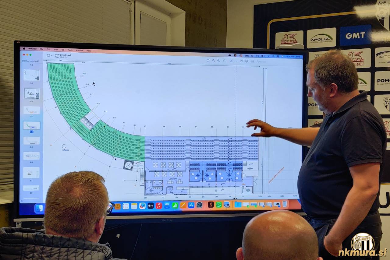Župan Mestne občine Murska Sobota je članom NŠ Mura predstavil informacije v zvezi z novo tribuno, ki bo povezovala severno in glavno tribuno. Avtorske pravice: nkmura.si Foto: Simon Horvat