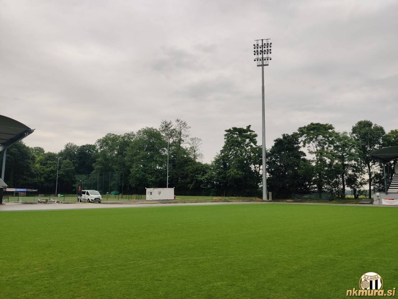 Severozahodni kotiček stadiona, kjer so nekoč igrali t. i. lejpi špil, bo v kratkem pozidan z novo tribuno, ki bo sprejela do 1000 gledalcev. Avtorske pravice: nkmura.si Foto: Aleš Cipot/fotolens.si