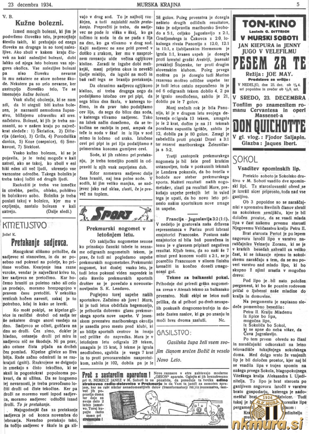 Našteti rezultati naših nogometašev, zlasti pa rezultati Mure, prekašajo uspehe prešnjih let in upamo, da bo leto 1935 našim športnikom prineslo še več uspehov.