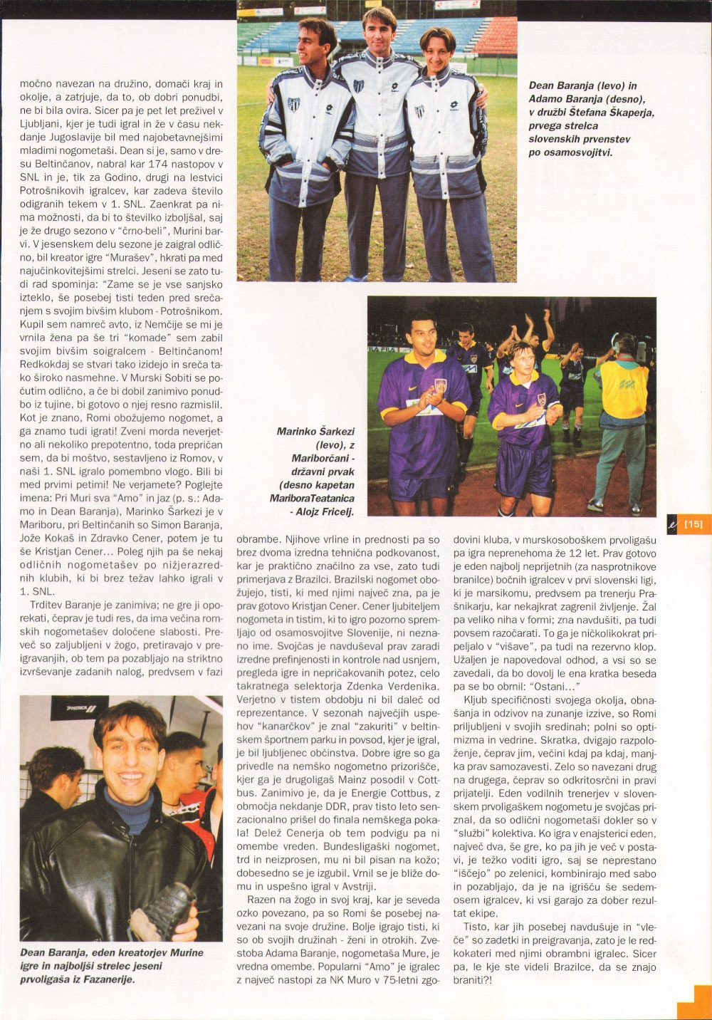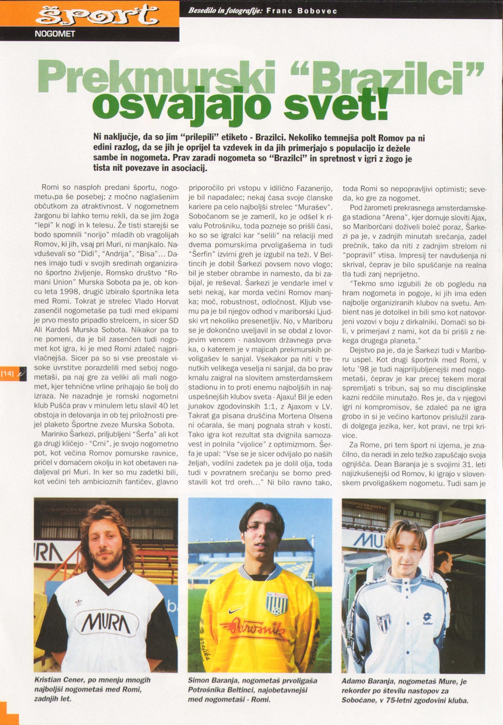 Z izrazom iz naslova je Franc Bobovec poimenoval Rome, ki so pustili pečat v slovenskem nogometu. Kristjan Cener, Simon Baranja, Adamo Baranja, Dean Baranja in Marinko Šarkezi so igralci, ki so vsi po vrsti nosili dres Mure. V tokratnem članku prinašamo življenjske poti zgoraj omenjenih igralcev v začetku leta 1999. Kristjan Cener je denimo na vrhuncu svoje kariere veljal za najboljšega veznega igralca v državi.