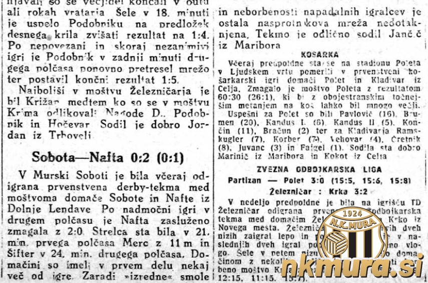 V nedeljo je bila v Murski Soboti tekma 17. kroga slovenske lige med Soboto in Nafto. Prekmurski derbi so z 0:2 dobili Lendavčani. Ob polčasu je bilo 0:1.