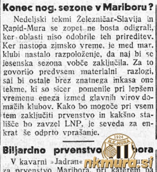 Spomnimo: Oblasti niso prepovedale le tekem Mure, temveč vseh mariborskih klubov na igriščih v Mariboru.