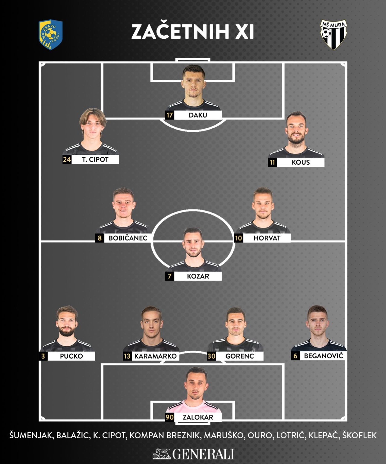 Mura: Zalokar, Pucko (od 69. Šturm), Karamarko, Gorenc, Beganović (od 46. T. Cipot), Maruško (od 78. Ouro), Bobičanec, Horvat, Klepač, Kous, Daku. Trener: Damir Čontala.