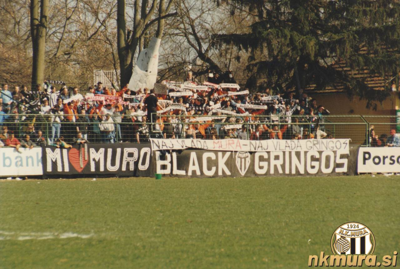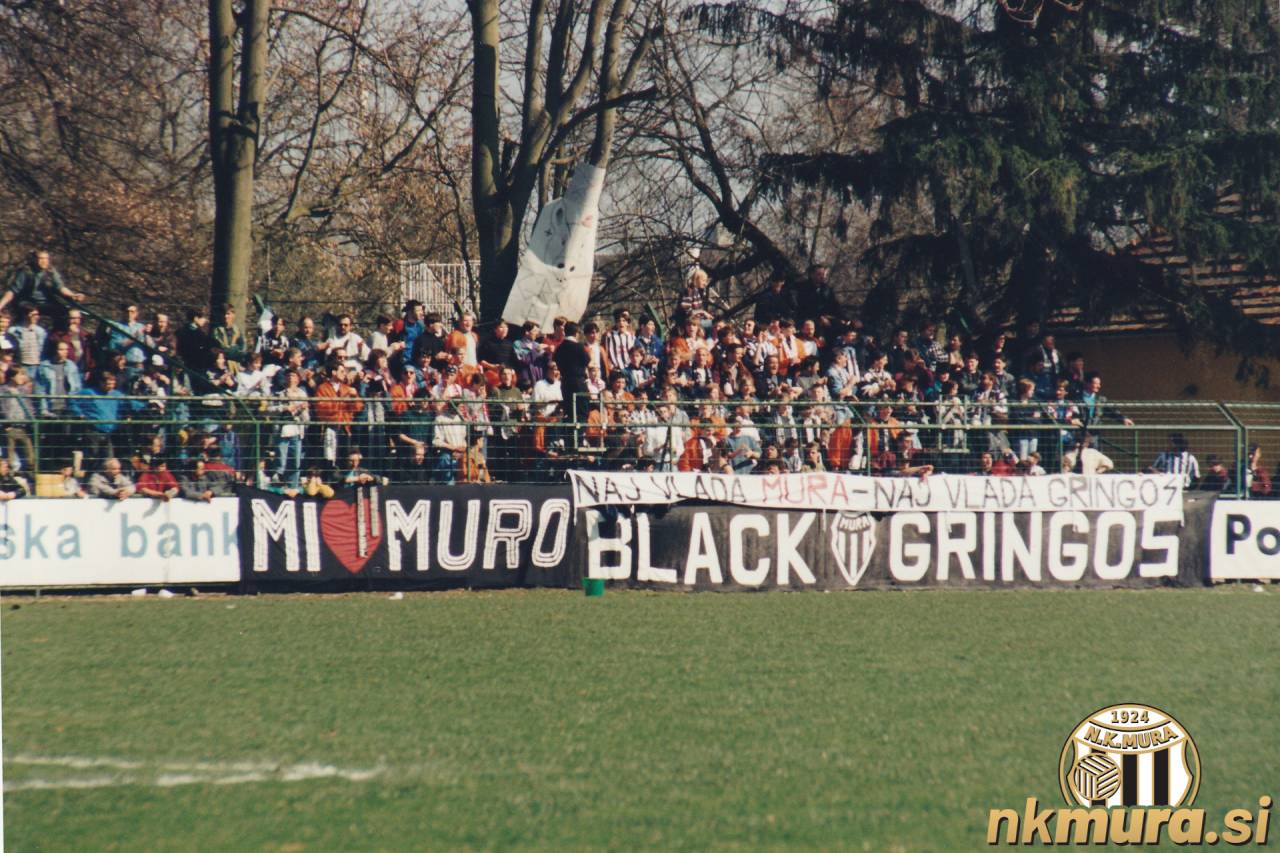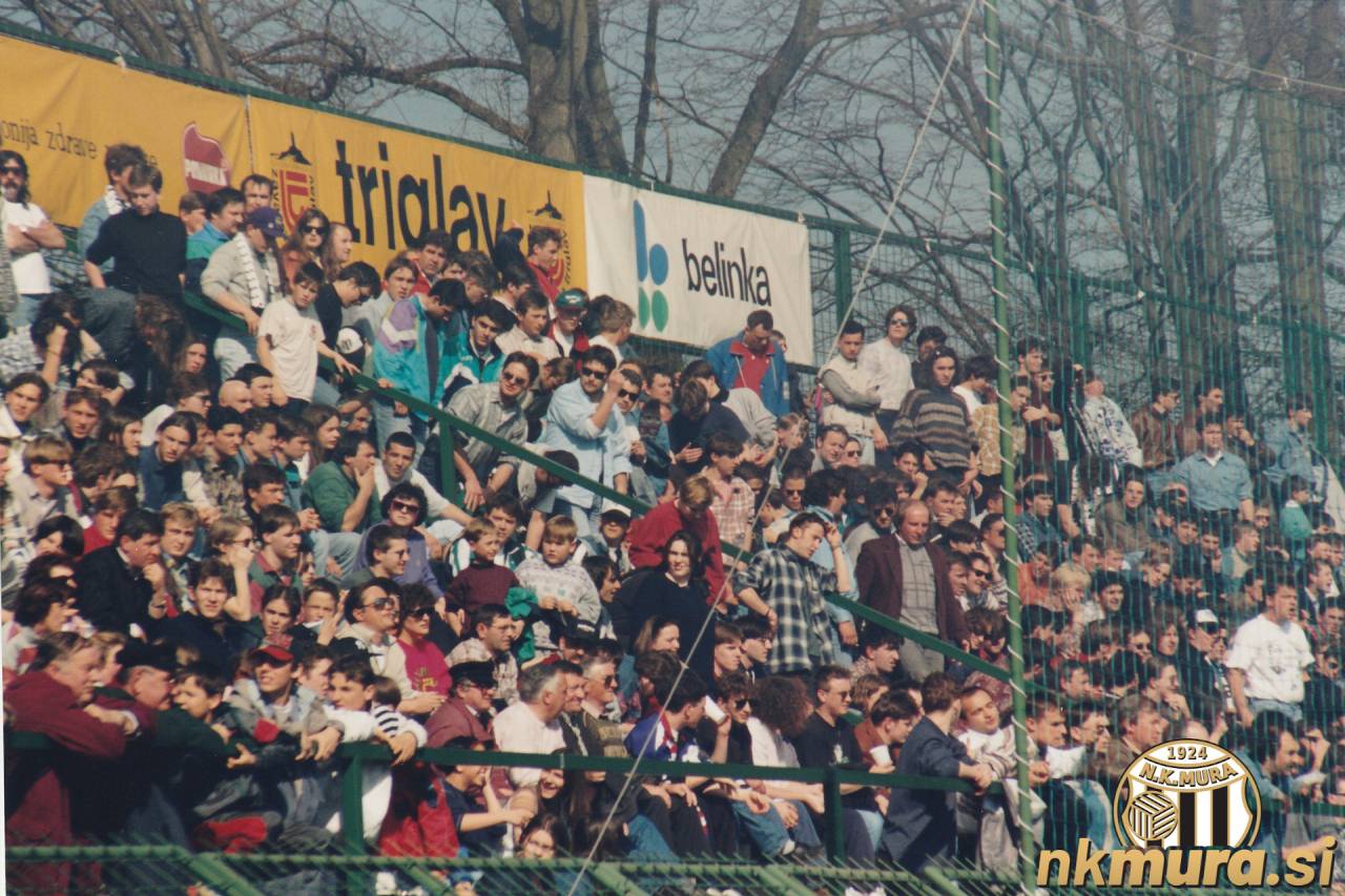 Gledalci na tekmi Mura : Olimpija, 6. aprila 1996. Avtorske pravice: nkmura.si Foto: Aleš Cipot/fotolens.si
